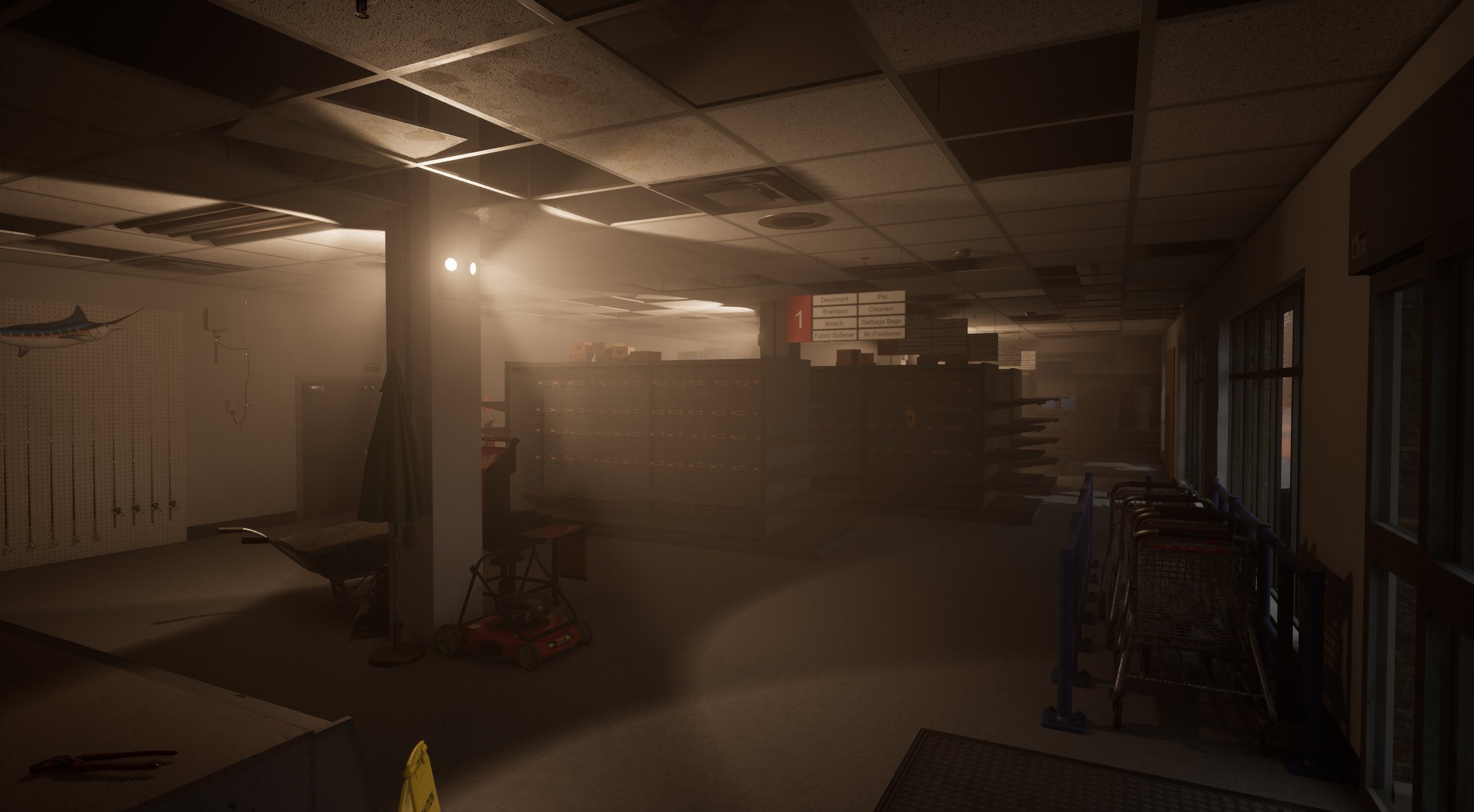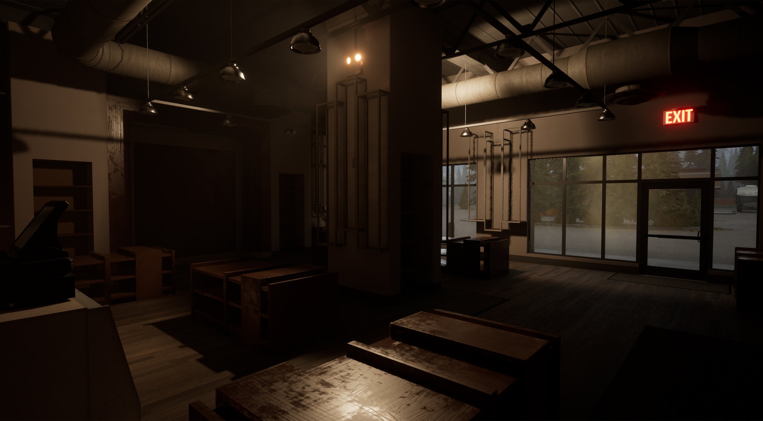 We wanted the player to really feel the difference between a building that has power, a building that has lost power but has the emergency lighting active and a building that has absolutely no power or light sources.